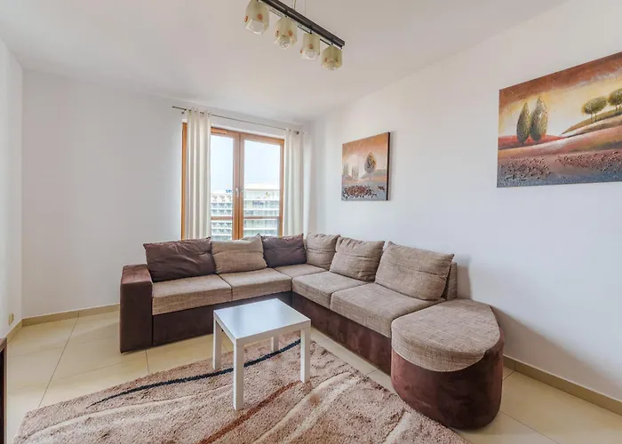 Olympic Park Apartment with the Sea View Kołobrzeg o powierzchni 50 m^2 znajduje się około 25 min spacerem od Parku im. Stefana Żeromskiego w Kołobrzegu i oferuje Wi-Fi dla osób podróżujących służbowo lub turystycznie. MarinGo znajduje się w 150 metrach, a Oceanarium leży około 25 min spacerem od apartamentu.